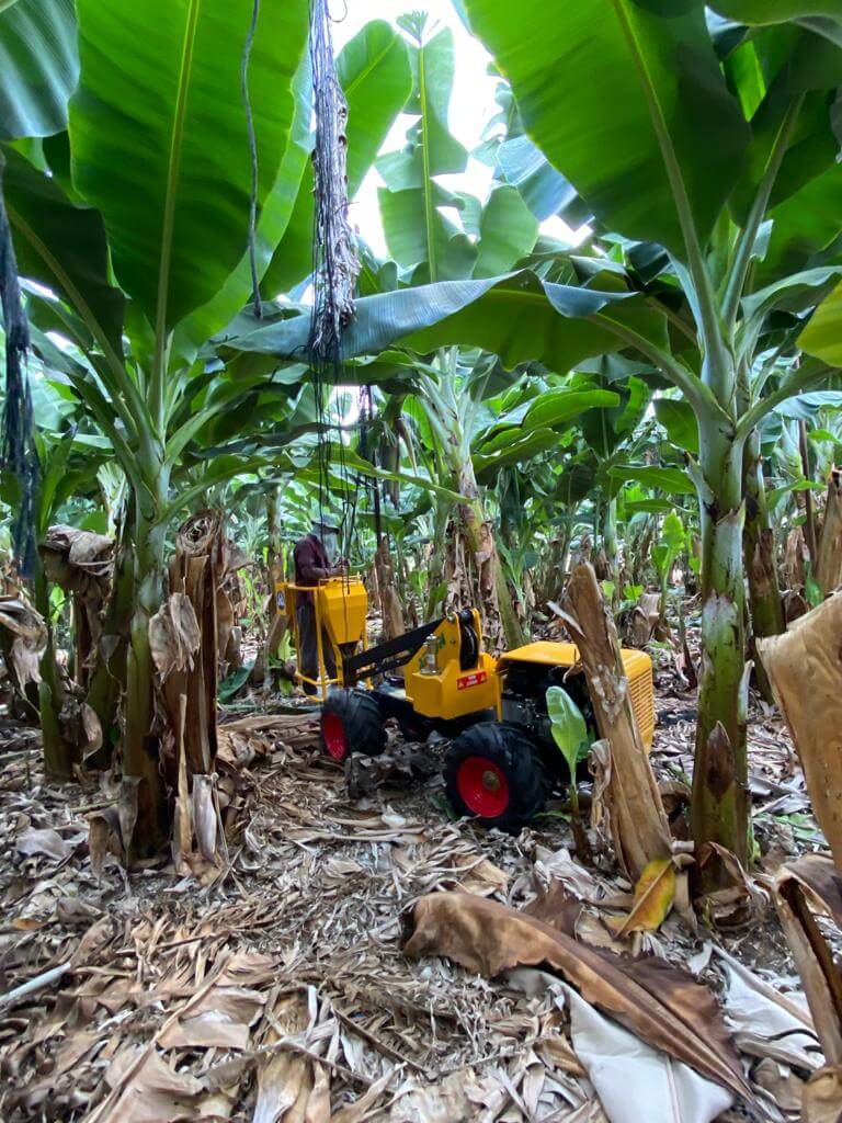 המכונה מייעלת את תהליך התמיכה של העצים, העטיפה של האשכולות, דילול וכל ועבודות הגובהה בתוך בית הרשת.